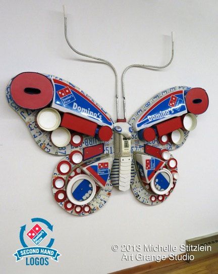We really do love when brands gets involved with upcycling. That’s why we are so excited to talk about the Domino’s second hand logos project. This is an awesome upcycling campaign from Domino’s Pizza. Here’s what happened: when Domino’s Pizza set out to do a brand refresh, their ad agency questioned what to do with their old signage and store materials. This resulting answer is a project called Second Hand Logos, where 10 artists set out to create artwork utilizing old Domino’s Pizza brand assets.